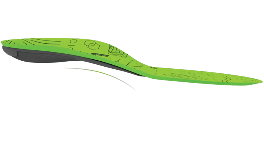 Flex line angles on each insole cap are based on the distribution and timing of pressure during your dynamic scan. Angled to provide guidance to your foot during the gait cycle.